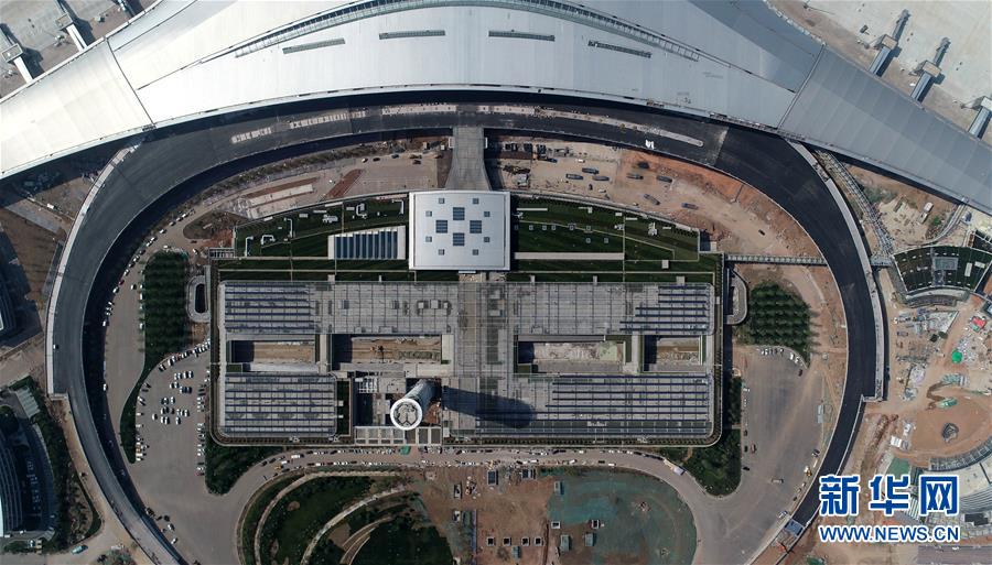 2019年6月12日無人機(jī)拍攝的建設(shè)中的青島膠東國際機(jī)場(chǎng)。新華社記者李紫恒攝