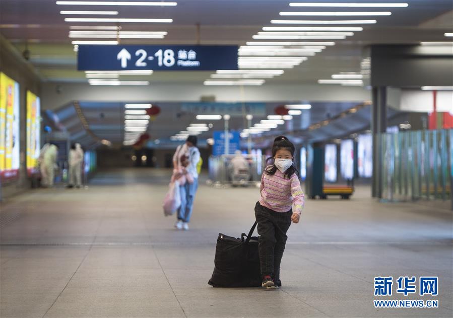 3月28日,在漢口火車(chē)站,一名小朋友幫家長(zhǎng)提行李出站。當(dāng)日零時(shí)起,武漢市恢復(fù)辦理鐵路客站到達(dá)業(yè)務(wù)。為做好抵漢旅客組織工作,武漢三大火車(chē)站安排專(zhuān)人提前與列車(chē)對(duì)接,核對(duì)下車(chē)人數(shù),并組織工作人員和鐵路志愿者提前在站臺(tái)等候接車(chē),做好組織引導(dǎo)。列車(chē)到達(dá)后,車(chē)站配合防疫部門(mén)做好旅客出站測(cè)溫、登記信息等工作,并和公交集團(tuán)、地鐵公司聯(lián)動(dòng),引導(dǎo)旅客按照去向有序換乘。新華社記者肖藝九攝