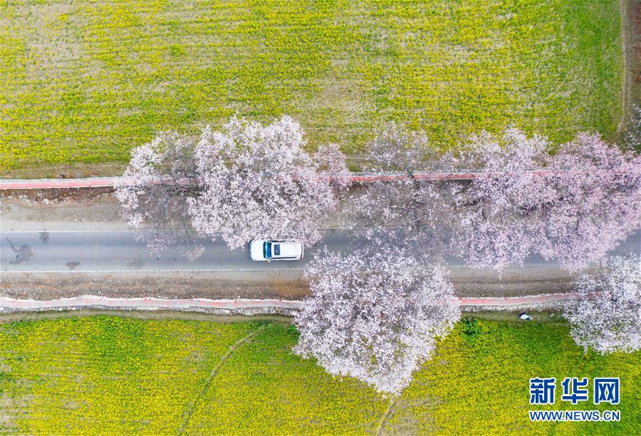 3月26日,西藏林芝境內(nèi)盛開的桃花(無人機(jī)照片)。新華社記者 孫非 攝