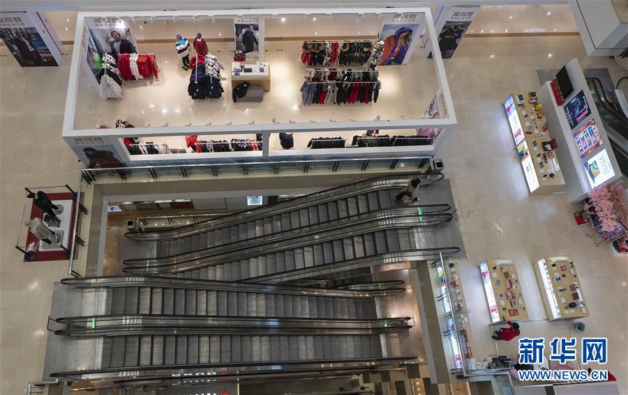3月30日,在武商世貿(mào)廣場,一位顧客乘坐滾梯。當(dāng)日,武漢市多家商場開門迎客。新華社記者費茂華攝