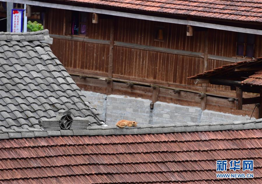 烏英苗寨的一只貓?jiān)谖蓓斔X(jué)(9月2日攝)。新華社記者黃孝邦攝