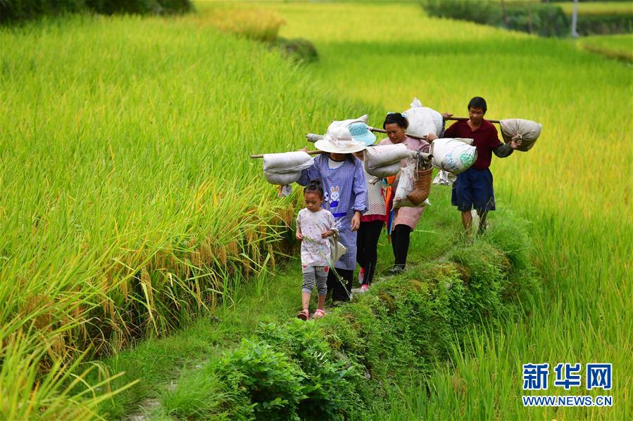 烏英苗寨秋收歸來(lái)的人們(9月2日攝)。新華社記者黃孝邦攝