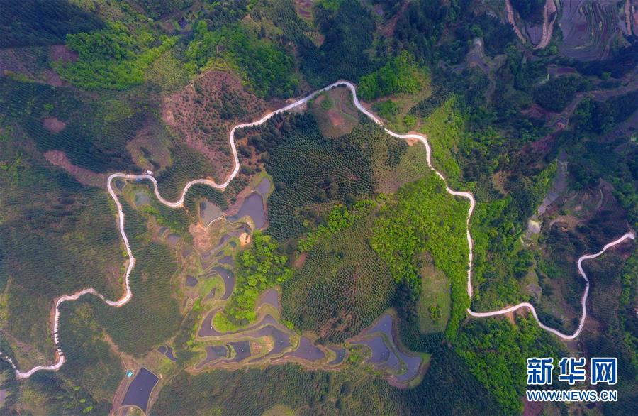 這是融水苗族自治縣桿洞鄉(xiāng)黨鳩村烏英苗寨的公路(4月18日無(wú)人機(jī)拍攝)。新華社記者黃孝邦攝