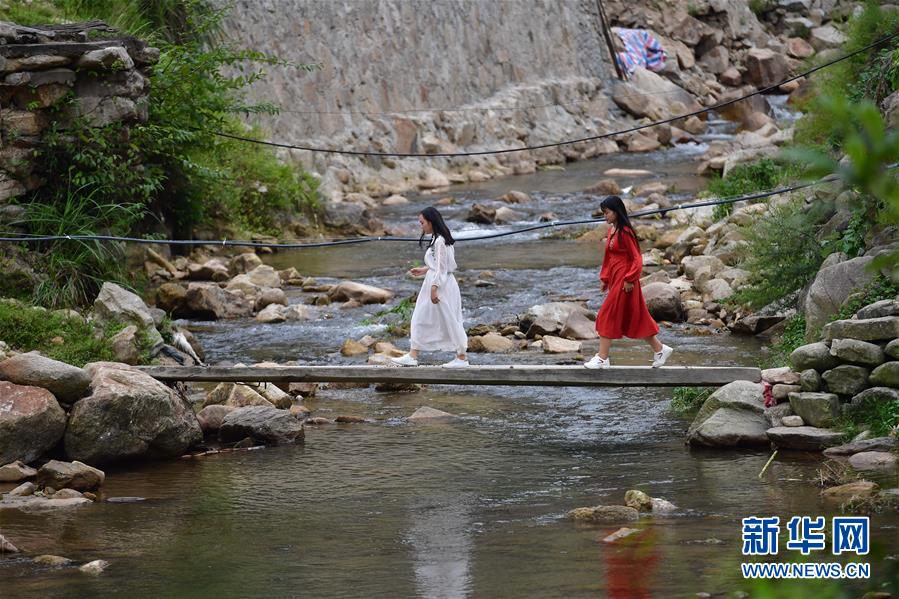 兩名女孩從烏英苗寨的烏英河橋上走過(guò)(9月2日攝)。新華社記者黃孝邦攝