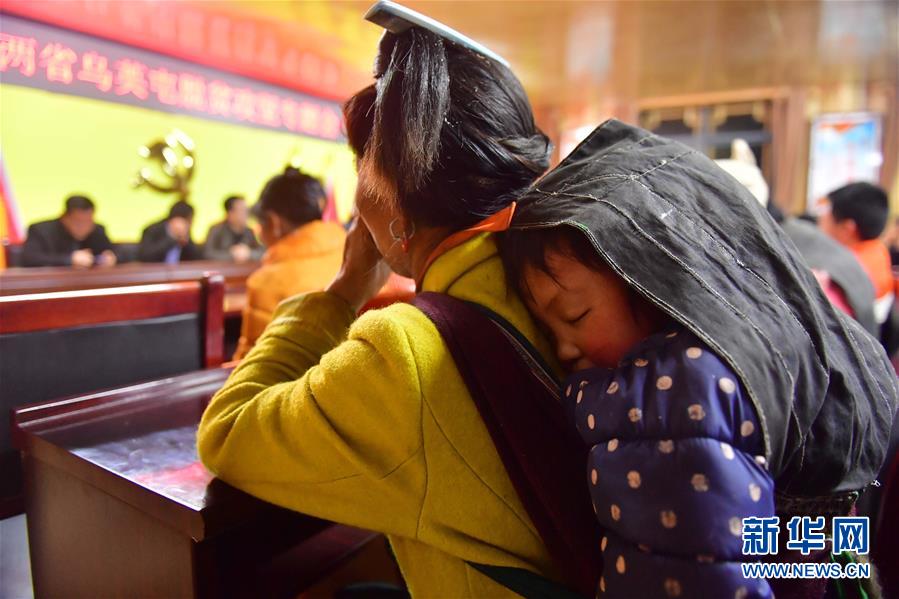 一名婦女背著小孩參加烏英苗寨脫貧產業(yè)會議(3月14日攝)。新華社記者黃孝邦攝