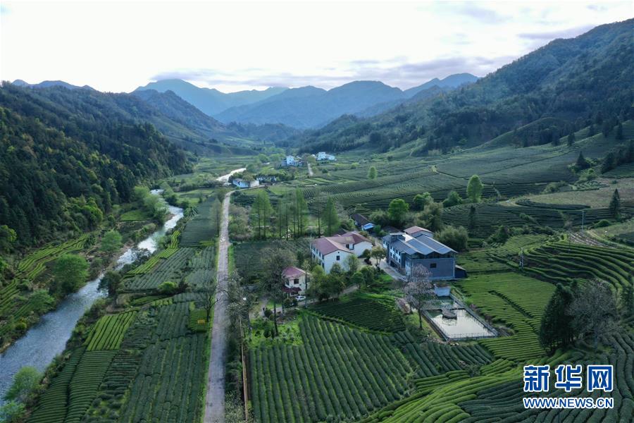 武夷山國家公園內(nèi)茶園青翠,即將進入采摘期(4月1日攝,無人機照片)。 新華社記者 姜克紅 攝