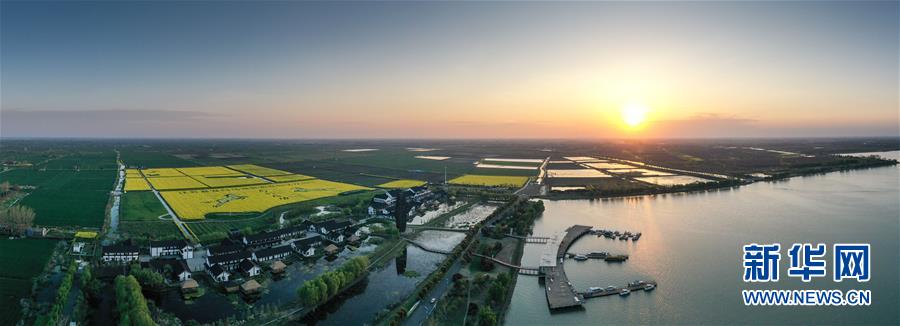 這是4月5日拍攝的白馬湖風(fēng)光(無人機(jī)全景照片)。 新華社記者 楊磊 攝