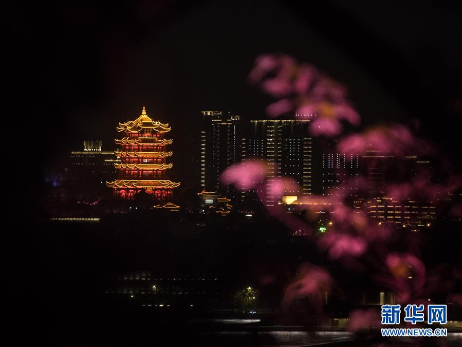 這是4月7日晚在武漢龜山拍攝的黃鶴樓夜景。新華社記者肖藝九攝