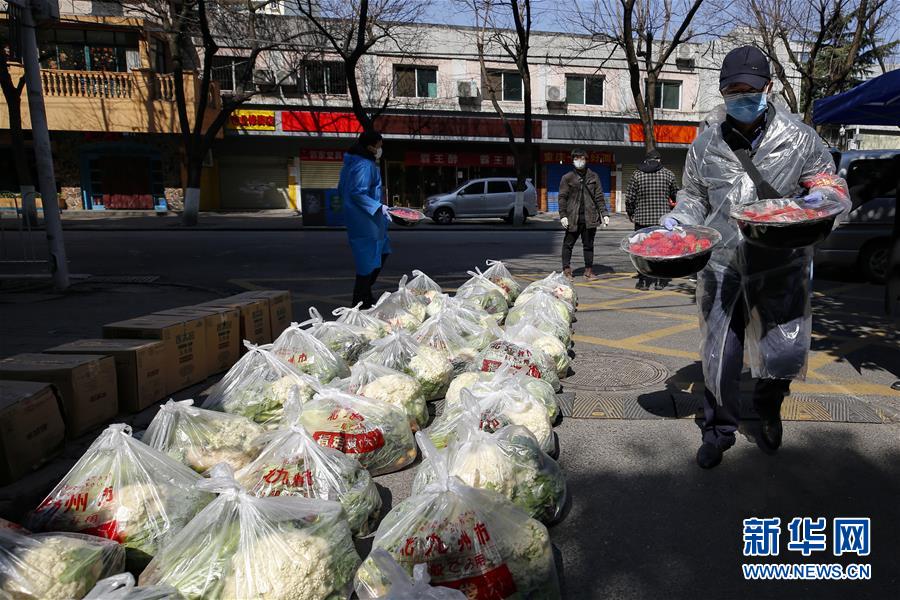 2月20日,湖北省武漢市下沉花橋社區(qū)的干部在搬運居民訂購的草莓。 新華社記者 沈伯韓 攝