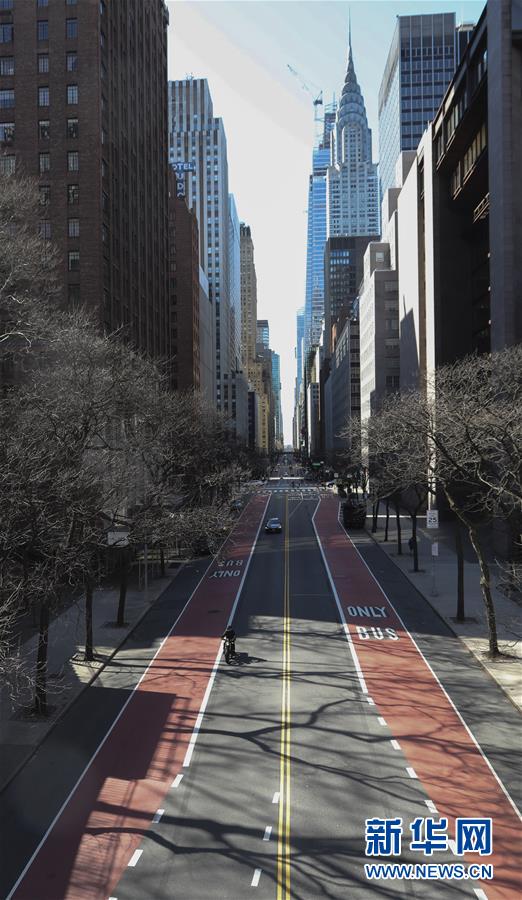 3月21日,在美國(guó)紐約,以往繁忙的街道上車(chē)輛寥寥。新華社記者王迎攝