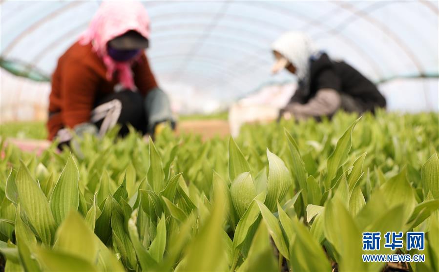 4月13日,在八角臺(tái)街道雅化村花圃內(nèi),花農(nóng)為宿根花卉除草。新華社記者姚劍鋒攝