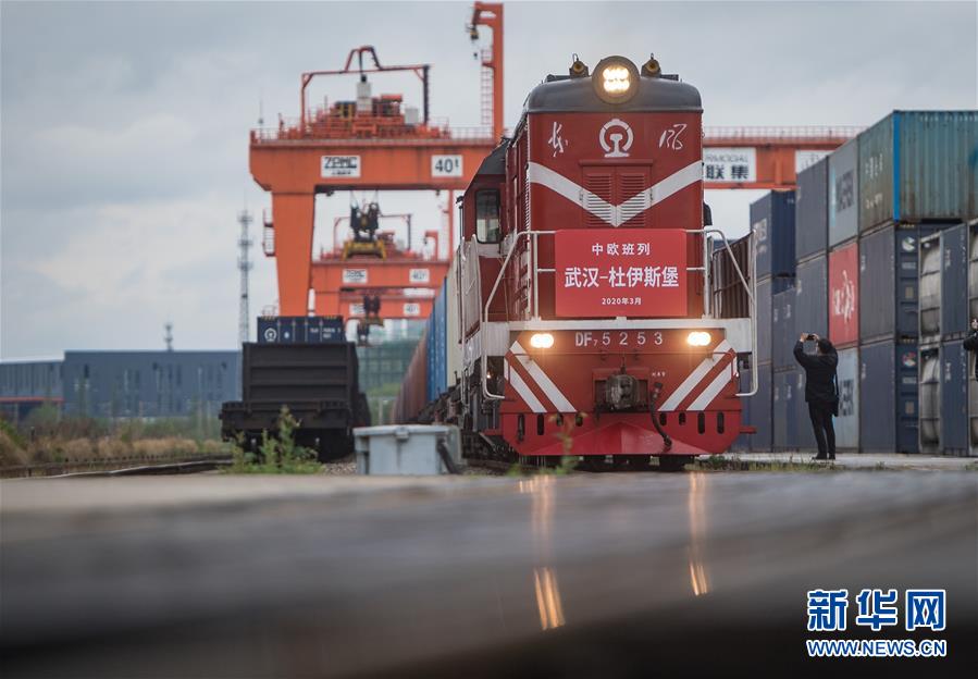 3月28日,開往德國杜伊斯堡的中歐(武漢)班列從中鐵聯(lián)集武漢中心站駛出。3月28日上午10點,中歐班列(武漢)X8015/6次運載50只集裝箱從中鐵聯(lián)集武漢中心站始發(fā)。班列將從阿拉山口出境,預(yù)計15天后抵達(dá)德國杜伊斯堡。這是自疫情防控以來,從武漢開出的首趟中歐班列,標(biāo)志著中歐班列(武漢)恢復(fù)常態(tài)化運營。新華社記者肖藝九攝