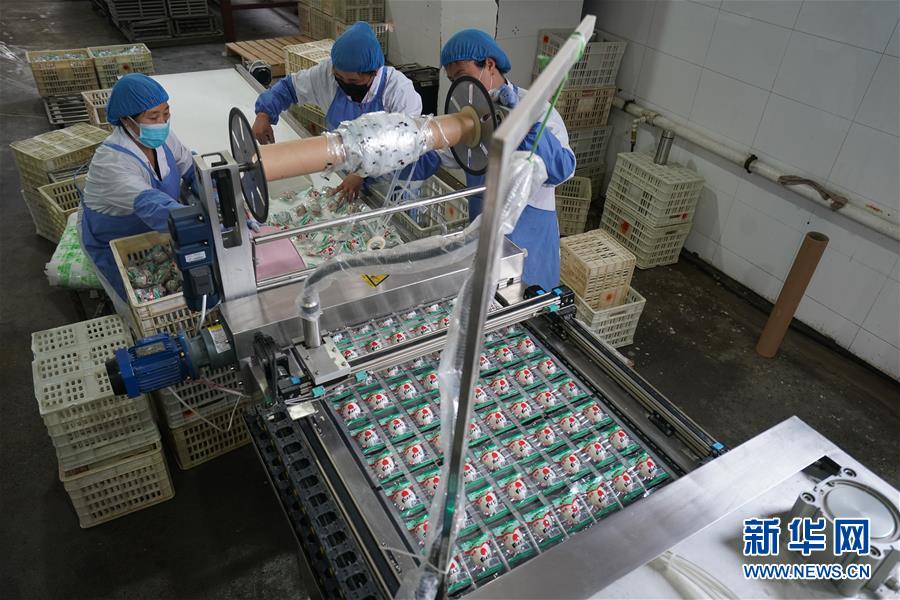 江蘇高郵鴨集團的工作人員將塑封好的鴨蛋產品進行進一步加工作業(yè)(4月15日攝)?!案哙]鴨蛋”是江蘇高郵的特色農業(yè)名片。近年來,當?shù)卦诹挤N繁育、生態(tài)養(yǎng)殖、產品加工等方面加大力度,推動高郵鴨蛋品牌化建設,讓小鴨蛋成為帶動農戶致富的大產業(yè)。2019年,高郵市共計生產熟制鴨蛋產品近11.2億枚,年產值近17.68億元。新華社記者李博攝