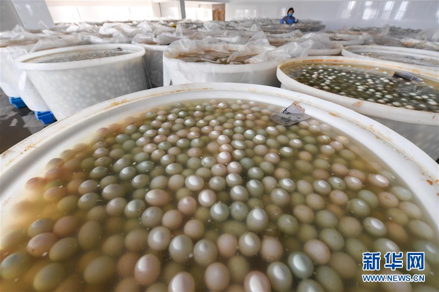 在江蘇高郵鴨集團生產車間,腌制好的鴨蛋準備進行清洗包裝作業(yè)(4月15日攝)?!案哙]鴨蛋”是江蘇高郵的特色農業(yè)名片。近年來,當?shù)卦诹挤N繁育、生態(tài)養(yǎng)殖、產品加工等方面加大力度,推動高郵鴨蛋品牌化建設,讓小鴨蛋成為帶動農戶致富的大產業(yè)。2019年,高郵市共計生產熟制鴨蛋產品近11.2億枚,年產值近17.68億元。新華社記者李博攝