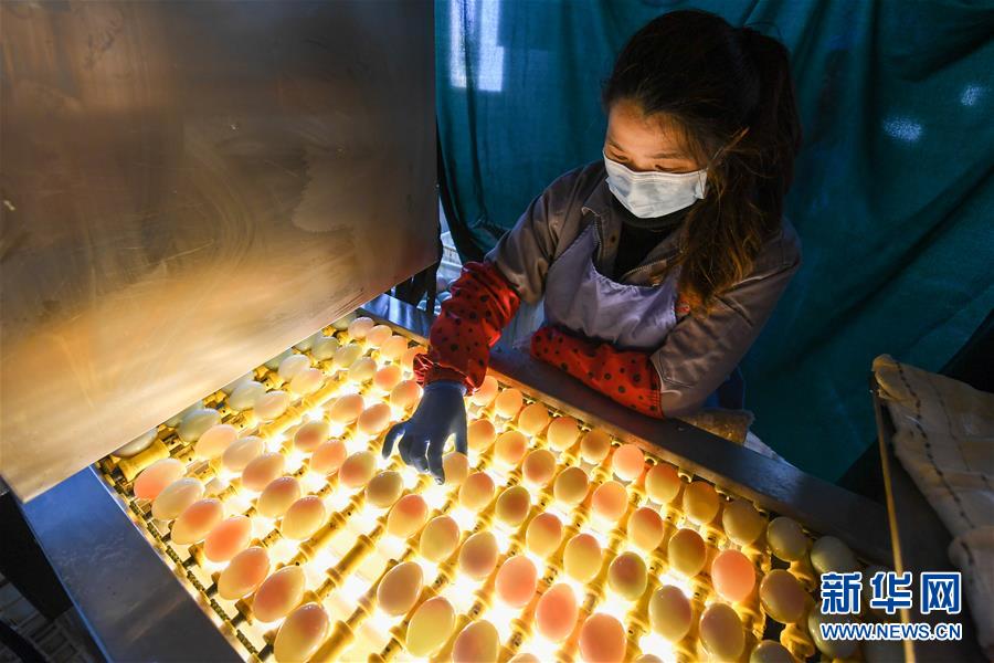 江蘇高郵鴨集團的工作人員在生產線上對鴨蛋進行光檢作業(yè)(4月15日攝)?!案哙]鴨蛋”是江蘇高郵的特色農業(yè)名片。近年來,當?shù)卦诹挤N繁育、生態(tài)養(yǎng)殖、產品加工等方面加大力度,推動高郵鴨蛋品牌化建設,讓小鴨蛋成為帶動農戶致富的大產業(yè)。2019年,高郵市共計生產熟制鴨蛋產品近11.2億枚,年產值近17.68億元。新華社記者李博攝