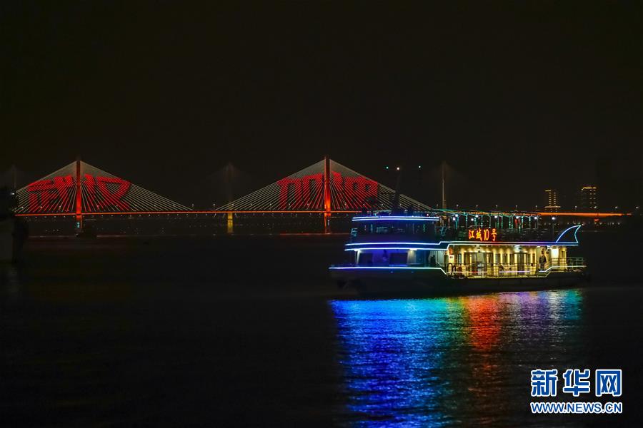 4月22日,市民乘坐武漢長江客運輪渡出行時,在船上拍攝夜景。為建立與經(jīng)濟社會發(fā)展和疫情防控需要相適應(yīng)的運輸服務(wù)保障機制,保障市民出行需求,從4月22日起,武漢城市公共交通有序恢復(fù)全線網(wǎng)運營。新華社記者沈伯韓攝