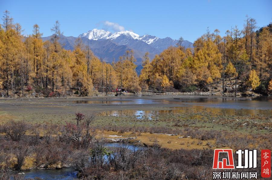 溝里有大片的落葉松、杜鵑和云杉林,雪山、海子、濕地、河流等景觀應(yīng)有盡有,唯獨沒有公路,只能沿木棧道徒步游覽。李仁奇攝