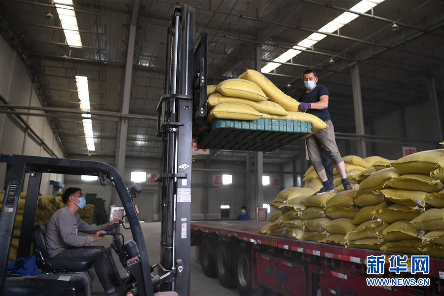 4月26日,中哈霍爾果斯國際邊境合作中心中方配套區(qū)內(nèi)的新疆兆豐和生物科技有限公司的員工在裝車。3月以來,在做好疫情防控的前提下,新疆霍爾果斯“口岸經(jīng)濟”加快復(fù)蘇,每天出入其中的商販和游客逐漸增多。與此同時,位于中哈霍爾果斯國際邊境合作中心中方配套區(qū)內(nèi)的各家企業(yè)正抓緊時間生產(chǎn)。新華社記者顧煜攝