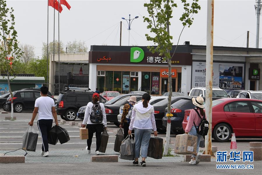 4月26日,在中哈霍爾果斯國際邊境合作中心中方出口處,不少游客和商販購物歸來。3月以來,在做好疫情防控的前提下,新疆霍爾果斯“口岸經(jīng)濟”加快復(fù)蘇,每天出入其中的商販和游客逐漸增多。與此同時,位于中哈霍爾果斯國際邊境合作中心中方配套區(qū)內(nèi)的各家企業(yè)正抓緊時間生產(chǎn)。新華社記者顧煜攝
