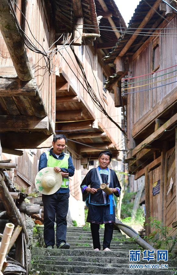 李義成(右)在走訪貧困戶(4月20日攝)。新華社記者黃孝邦攝