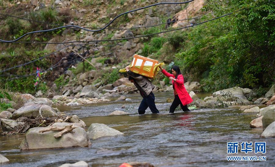 3月25日,在桂黔烏英苗寨,村民在搬運螺苗,準(zhǔn)備投放。新華社記者黃孝邦攝