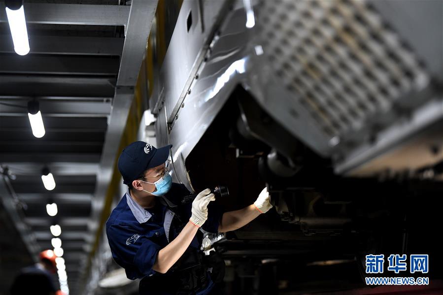 4月29日夜,合肥南動(dòng)車(chē)運(yùn)用所的工作人員對(duì)動(dòng)車(chē)組進(jìn)行檢修。每當(dāng)夜深人靜的時(shí)候,合肥南動(dòng)車(chē)運(yùn)用所卻燈火通明,“動(dòng)車(chē)安全守護(hù)者”們堅(jiān)守崗位,對(duì)動(dòng)車(chē)組進(jìn)行全面細(xì)致檢修。新華社記者 劉軍喜 攝