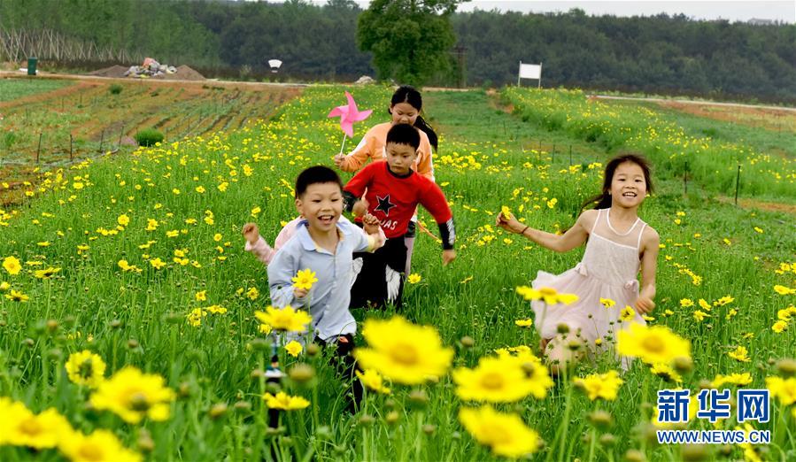 5月1日,小朋友在江西省景德鎮(zhèn)市樂平市眾埠鎮(zhèn)高橋村沃博生態(tài)產(chǎn)業(yè)園生態(tài)景區(qū)內(nèi)游玩?!拔逡弧奔偃掌陂g,人們以多種方式放松心情、享受假日。新華社發(fā)(朱定文攝)