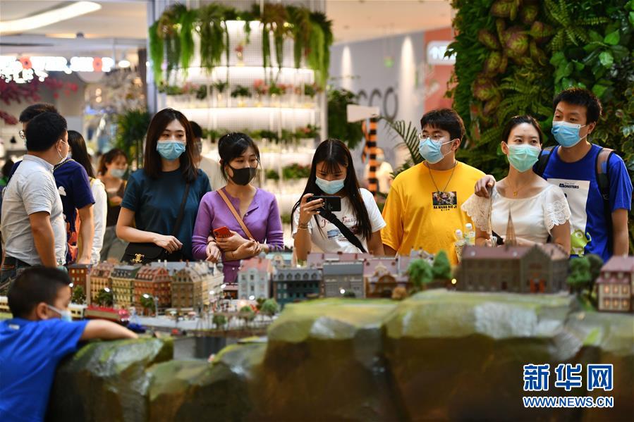 5月2日,人們?cè)谔旖蚴泻推絽^(qū)大悅城商場(chǎng)內(nèi)拍照?!拔逡弧奔偃掌陂g,人們以多種方式放松心情、享受假日。新華社記者李然攝