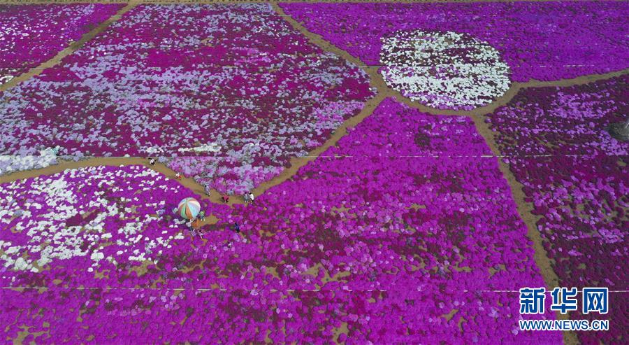 5月2日,游人在湖北省荊門市圣境花谷游玩(無(wú)人機(jī)照片)?!拔逡弧奔偃掌陂g,人們以多種方式放松心情、享受假日。新華社發(fā)(彭琦攝)