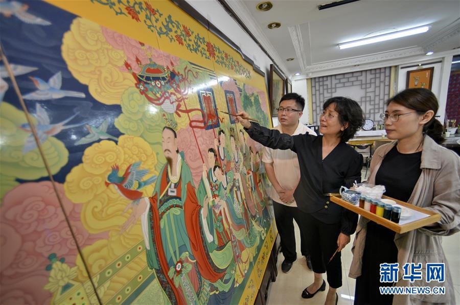 承恩寺壁畫《帝后放飛圖》金漆鑲嵌彩繪屏風(fēng)在京完成