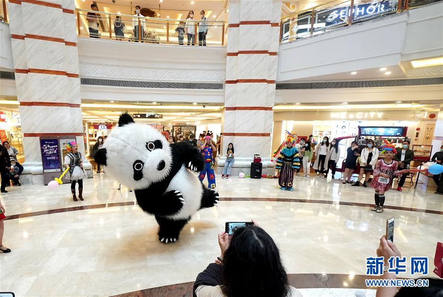 5月5日,大熊貓人偶在上海環(huán)球港商場(chǎng)為“五五購物節(jié)”營造氣氛。5月4日晚,上海首次啟動(dòng)大規(guī)模商業(yè)促銷活動(dòng)“五五購物節(jié)”,多家在線新經(jīng)濟(jì)企業(yè)參與,通過線上流量?jī)?yōu)勢(shì)反哺線下賣場(chǎng),實(shí)現(xiàn)電商與實(shí)體零售融合互動(dòng),激活消費(fèi)潛力、驅(qū)動(dòng)消費(fèi)復(fù)蘇。據(jù)“上海發(fā)布”的消息,截至5日14時(shí)12分,“五五購物節(jié)”上海地區(qū)消費(fèi)支付總額已超100億元。新華社記者陳飛攝