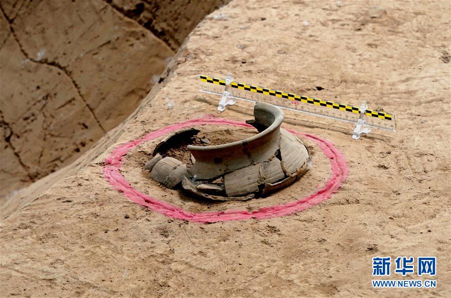 這是雙槐樹遺址出土的“曲腹缽”(4月28日攝)。新華社記者李安攝