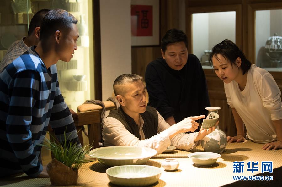 5月8日,項(xiàng)宏金在龍泉青瓷裝飾紋樣研究所和來訪的年輕瓷人分享古瓷。1965年出生的項(xiàng)宏金,被浙江龍泉年輕一代瓷人稱為“項(xiàng)哥”,他從20世紀(jì)90年代開始收集龍泉青瓷標(biāo)本,研究青瓷紋樣。2014年出版著作《龍泉青瓷裝飾紋樣》,次年開設(shè)龍泉青瓷裝飾紋樣研究所,將自己收藏的千余件標(biāo)本跟瓷器愛好者、創(chuàng)作者免費(fèi)分享。新華社記者翁忻旸攝