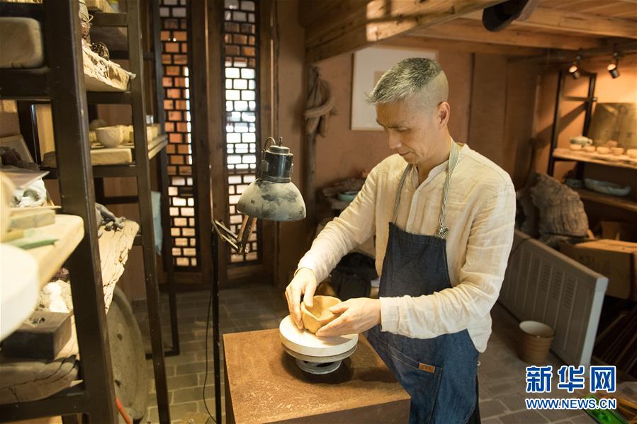 5月8日,項(xiàng)宏金在龍泉青瓷裝飾紋樣研究所捏制器皿。1965年出生的項(xiàng)宏金,被浙江龍泉年輕一代瓷人稱為“項(xiàng)哥”,他從20世紀(jì)90年代開始收集龍泉青瓷標(biāo)本,研究青瓷紋樣。2014年出版著作《龍泉青瓷裝飾紋樣》,次年開設(shè)龍泉青瓷裝飾紋樣研究所,將自己收藏的千余件標(biāo)本跟瓷器愛好者、創(chuàng)作者免費(fèi)分享。新華社記者翁忻旸攝