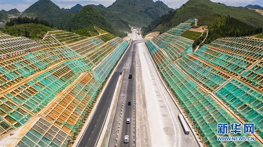 都安高速改擴(kuò)建路段的惠水樞紐(無人機(jī)照片,5月9日攝)。 新華社記者 陶亮 攝
