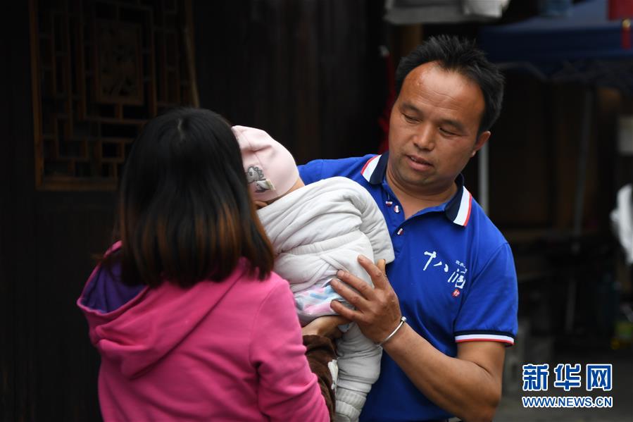 施六金(右)從妻子手中接過(guò)兒子施澤恩(4月25日攝)。1973年出生于十八洞村的施六金,由于父親患病很早就放棄學(xué)業(yè)和母親扛起了家庭的重?fù)?dān)。為了生活,他還曾遠(yuǎn)去東南亞打工。2015年,看到家鄉(xiāng)的變化,施六金回到村里開起了農(nóng)家樂(lè),年度家庭人均純收入也從2014年的1715元增長(zhǎng)到了2019年的35696元。2018年,施六金與心愛(ài)的人組建了家庭。今年初,施六金與愛(ài)人迎來(lái)了一個(gè)大胖小子。“做人做事要懂得回報(bào)和感恩?!笔┝鸾o剛出生的兒子取名施澤恩。新華社記者薛宇舸攝