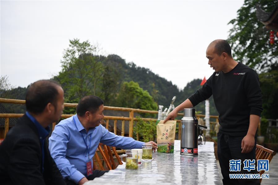 楊正邦(右)在為來(lái)自浙江的住客介紹十八洞村種植的“黃金茶”(4月25日攝)。楊正邦1978年出生于十八洞村,在外打工多年。近些年,眼看來(lái)十八洞村的游客越來(lái)越多,村里越來(lái)越熱鬧,楊正邦在2017年結(jié)束自己的打工生涯回鄉(xiāng)發(fā)展。他先是在村里擺起小吃攤,2018年開起農(nóng)家樂(lè),去年又搭起新房子擴(kuò)建成民宿,年度家庭人均純收入從2014年的1923元增加到2019年的7173元。新華社記者薛宇舸攝