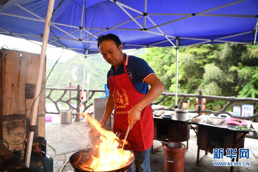施六金在自家開的農(nóng)家樂(lè)為客人準(zhǔn)備午餐(4月25日攝)。1973年出生于十八洞村的施六金,由于父親患病很早就放棄學(xué)業(yè)和母親扛起了家庭的重?fù)?dān)。為了生活,他還曾遠(yuǎn)去東南亞打工。2015年,看到家鄉(xiāng)的變化,施六金回到村里開起了農(nóng)家樂(lè),年度家庭人均純收入也從2014年的1715元增長(zhǎng)到了2019年的35696元。2018年,施六金與心愛(ài)的人組建了家庭。今年初,施六金與愛(ài)人迎來(lái)了一個(gè)大胖小子?!白鋈俗鍪乱没貓?bào)和感恩?!笔┝鸾o剛出生的兒子取名施澤恩。新華社記者薛宇舸攝