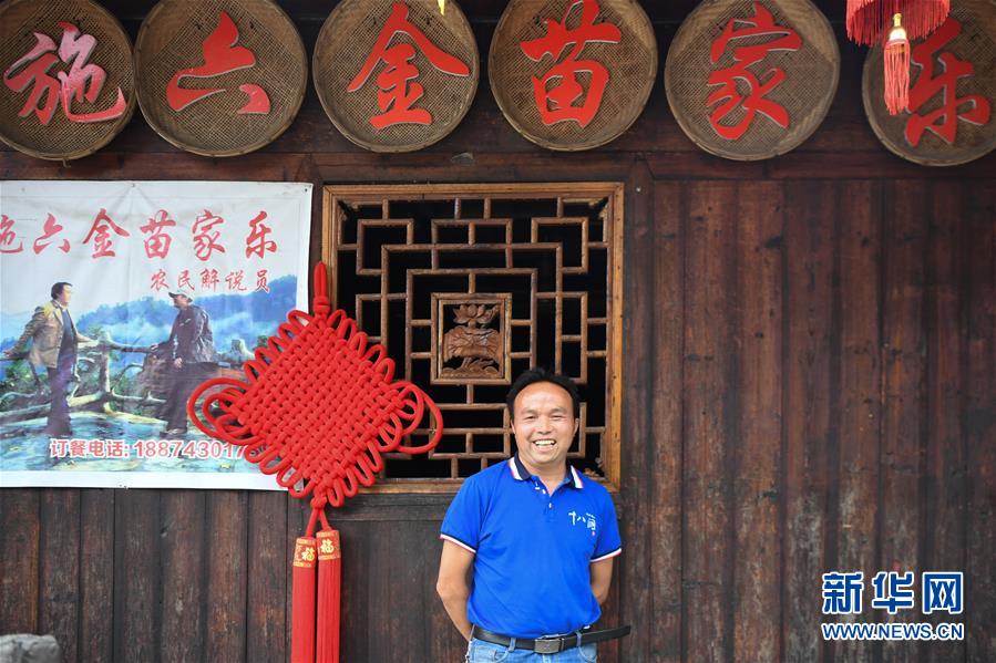 這是施六金在他的農(nóng)家樂(lè)前留影(4月25日攝)。1973年出生于十八洞村的施六金,由于父親患病很早就放棄學(xué)業(yè)和母親扛起了家庭的重?fù)?dān)。為了生活,他還曾遠(yuǎn)去東南亞打工。2015年,看到家鄉(xiāng)的變化,施六金回到村里開起了農(nóng)家樂(lè),年度家庭人均純收入也從2014年的1715元增長(zhǎng)到了2019年的35696元。2018年,施六金與心愛(ài)的人組建了家庭。今年初,施六金與愛(ài)人迎來(lái)了一個(gè)大胖小子。“做人做事要懂得回報(bào)和感恩?!笔┝鸾o剛出生的兒子取名施澤恩。新華社記者薛宇舸攝