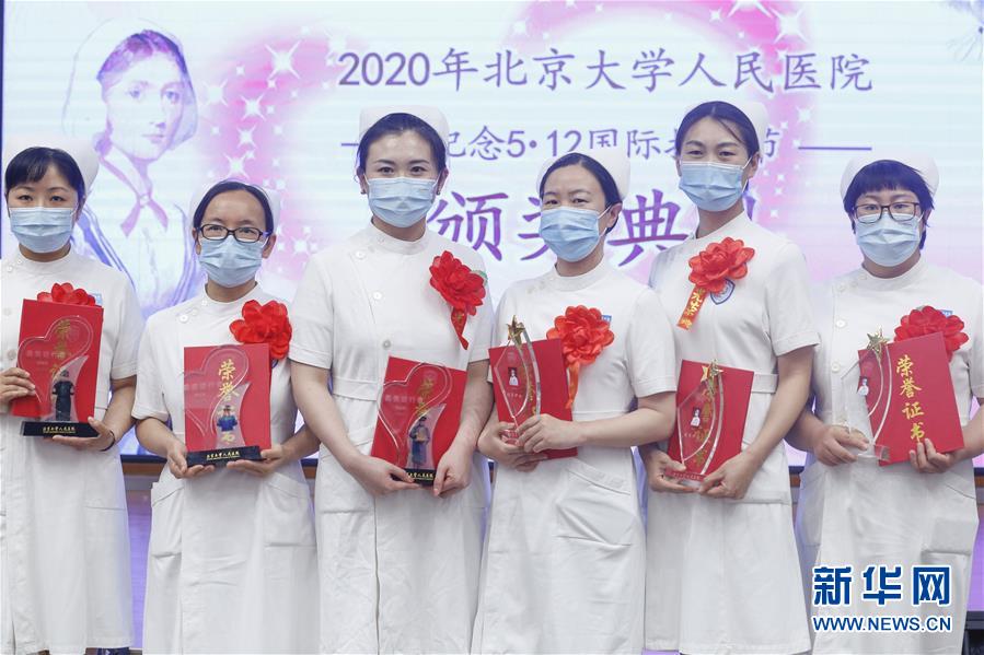 5月11日,獲獎護士在護士節(jié)活動上合影。在國際護士節(jié)到來之際,北京大學人民醫(yī)院11日舉辦慶祝護士節(jié)暨優(yōu)秀集體和個人表彰活動,并邀請援鄂醫(yī)療隊護士代表分享戰(zhàn)“疫”故事。我國今年護士節(jié)的主題為“致敬護士隊伍,攜手戰(zhàn)勝疫情”。新華社記者張玉薇攝