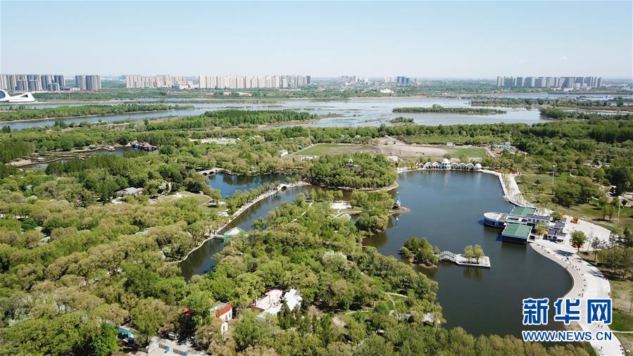 這是5月13日拍攝的太陽島風(fēng)景區(qū)(無人機照片)。時下,位于黑龍江省哈爾濱市的太陽島國家級風(fēng)景名勝區(qū)草青樹綠,綠意盎然。新華社記者王建威攝