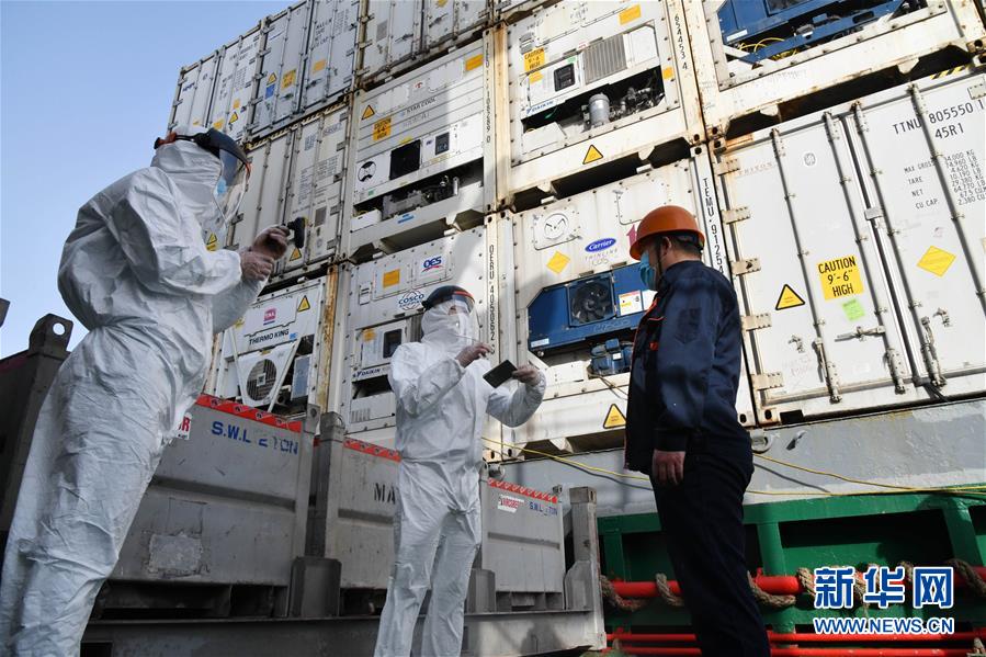 5月13日,山東威海出入境邊防檢查站民警在核對外籍船員證件。面對疫情防控要求,山東威海出入境邊防檢查站嚴密勤務組織、強化數(shù)據(jù)研判,加強口岸、碼頭的日常巡查,對國際船舶和船員強化監(jiān)管,全力打好疫情防輸入攻堅戰(zhàn)。據(jù)統(tǒng)計,自2月份以來,威海邊檢站共服務出入境(港)船舶400余艘次,出入境(港)人員7000多人次,為180多個集裝箱防疫物資提供通關便利。新華社記者朱崢攝
