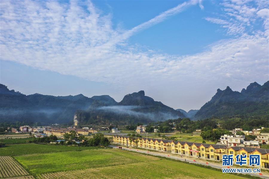 這是廣西南丹縣“千家瑤寨·萬戶瑤鄉(xiāng)”八圩社區(qū)易地扶貧搬遷安置點(4月29日攝,無人機照片)。新華社記者曹祎銘攝