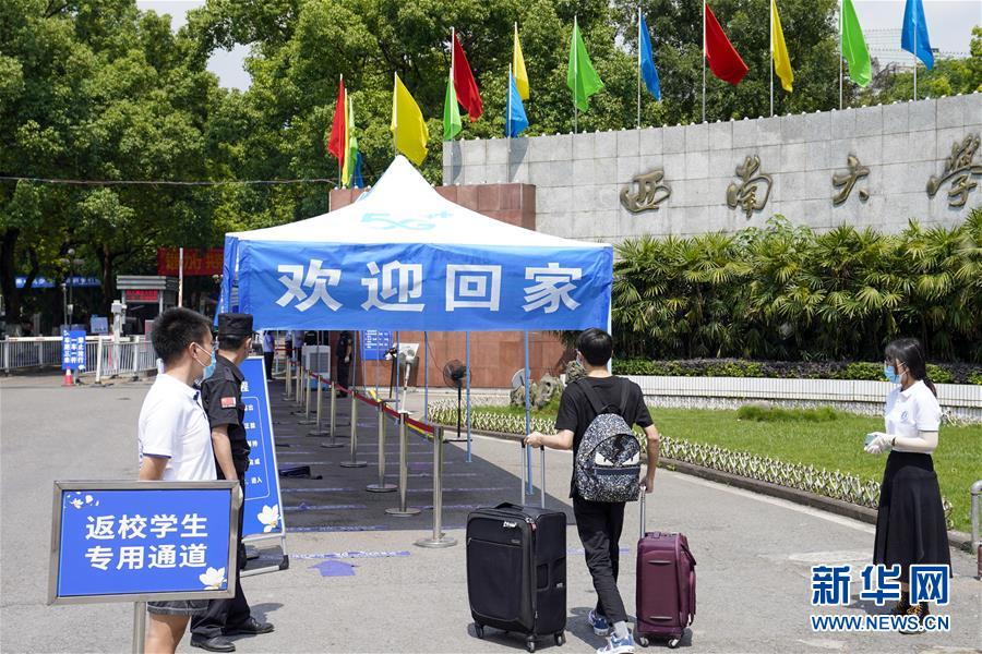 5月15日,在西南大學(xué)的返校學(xué)生專用通道前,學(xué)生按照工作人員和志愿者的引導(dǎo)有序進(jìn)入校區(qū)。當(dāng)日,重慶西南大學(xué)迎來(lái)疫情以來(lái)首批返校大學(xué)生。據(jù)介紹,按照疫情防控的需要,重慶市高校2020年春季學(xué)期從5月11日起按照“一校一策”原則,實(shí)行錯(cuò)峰錯(cuò)時(shí)分批次有序開(kāi)學(xué)復(fù)課。新華社記者劉潺攝