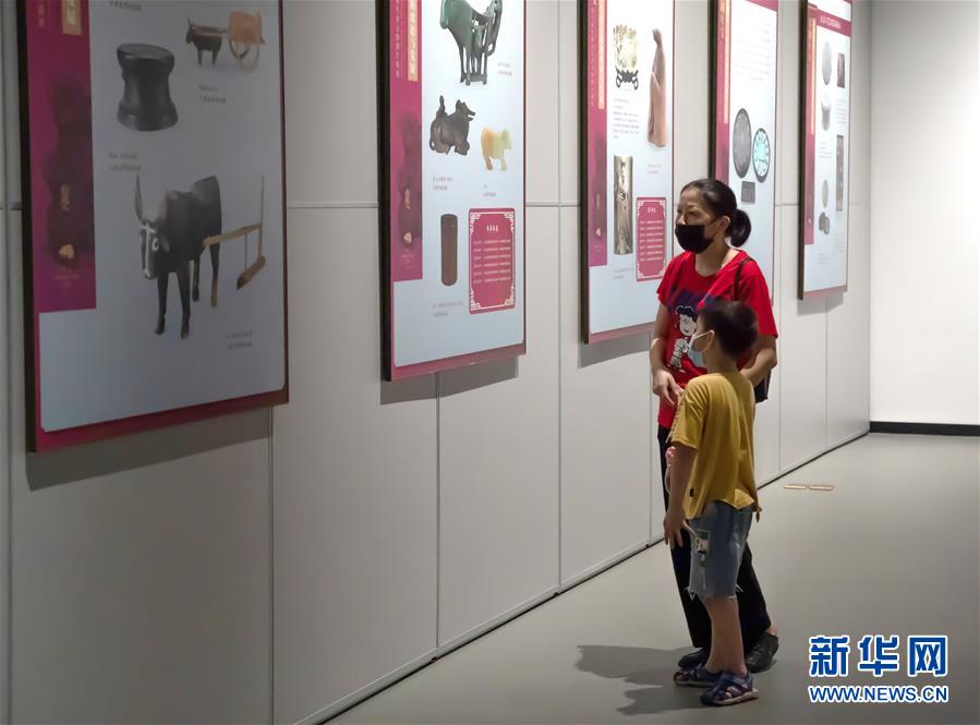 5月17日,參觀者在江西省博物館新館參觀。江西省博物館新館在做好疫情防控的前提下有序開放,公眾可通過(guò)網(wǎng)上預(yù)約參觀游覽。新華社記者張浩波攝
