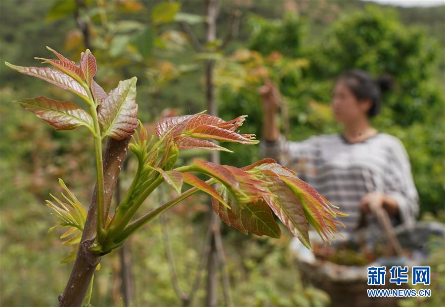 5月17日,秦皇島市撫寧區(qū)王家灣村的一位村民在自家香椿園采摘香椿芽。近年來,河北省秦皇島市撫寧區(qū)王家灣村村委會帶領(lǐng)村民在坡嶺荒地種植紅香椿樹1000多畝,綠化了荒坡荒地,增加了農(nóng)民收入。新華社記者楊世堯攝