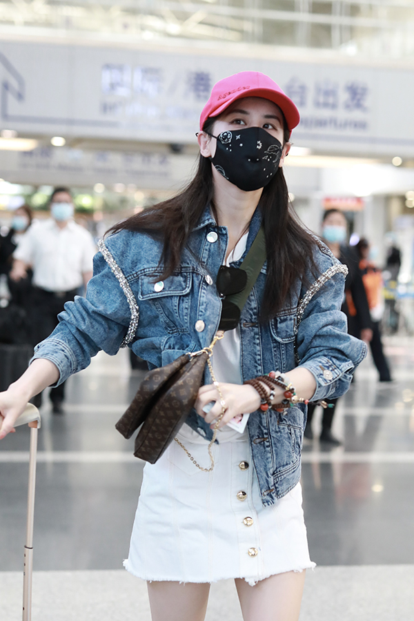 2020年5月18日,北京,黃圣依現(xiàn)身機(jī)場(chǎng)。
