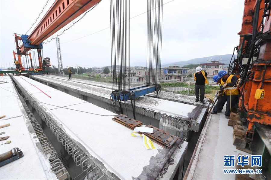 當日,福平鐵路最后一片T型梁成功架設在位于福建平潭的福平鐵路洋中特大橋橋墩上,這標志著歷時近2年的福平鐵路架梁工作正式完成。新華社記者林善傳攝