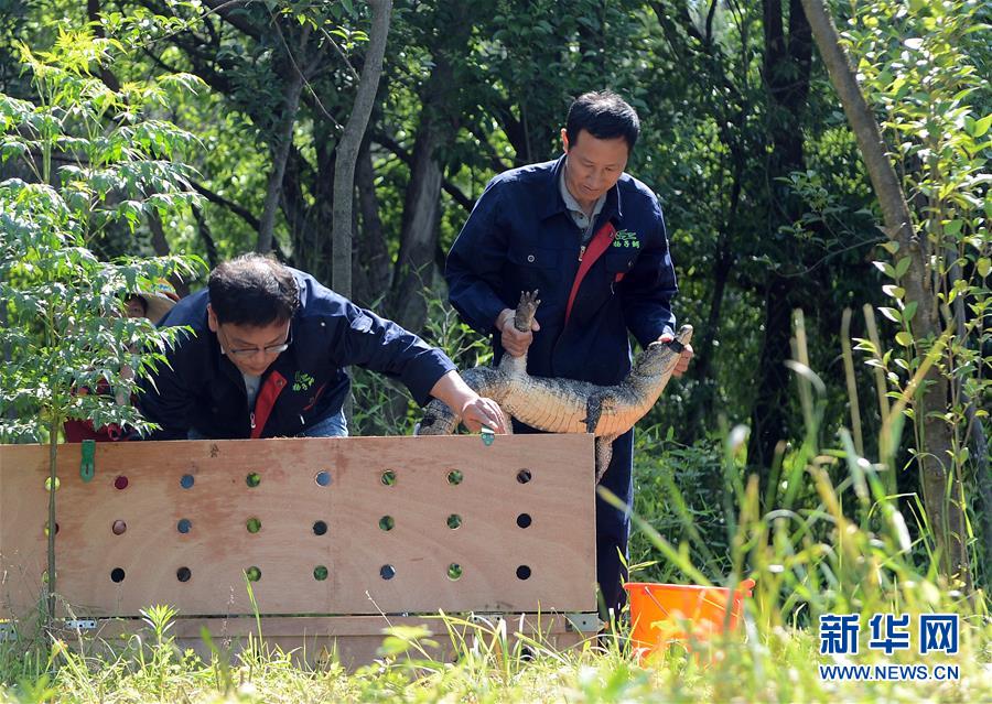 5月20日,工作人員準(zhǔn)備放歸揚(yáng)子鱷。當(dāng)日,安徽揚(yáng)子鱷國家級自然保護(hù)區(qū)在安徽多地同時(shí)放歸揚(yáng)子鱷,當(dāng)天共放歸人工繁育揚(yáng)子鱷32條。該保護(hù)區(qū)計(jì)劃2020年野外放歸揚(yáng)子鱷280條,剩余248條將在今后陸續(xù)放歸。新華社記者韓曉雨攝