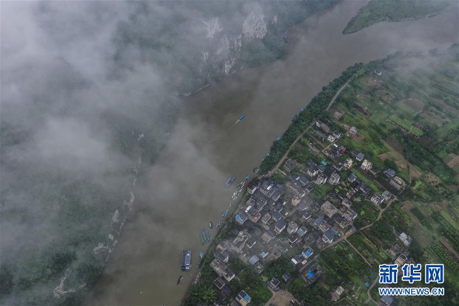 這是在廣西桂林市陽朔縣興坪鎮(zhèn)拍攝的山水風光(5月21日攝,無人機照片)。“蒼蒼森八桂,茲地在湘南。江作青羅帶,山如碧玉篸……”一千多年前,唐朝詩人韓愈寫盡桂林山水之美。初夏時節(jié),在廣西桂林市陽朔縣興坪鎮(zhèn),藍天白云下,煙雨朦朧中,桂林山水盡顯秀美。新華社記者 曹祎銘